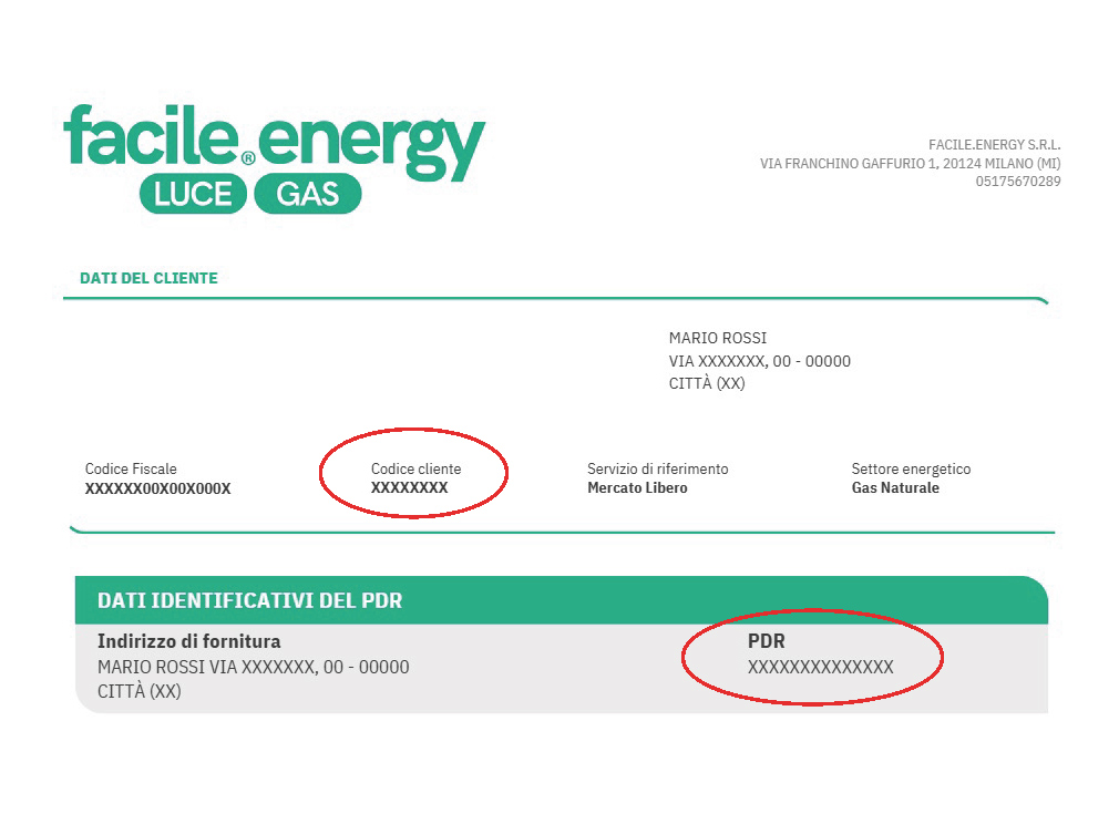 Compila il form inserendo: il tuo codice cliente (lo trovi nella prima pagina della bolletta, come vedi nell’immagine esemplificativa), il PDR (nella seconda pagina della bolletta), e la lettura del contatore (ovvero i numeri neri che trovi direttamente sul tuo contatore). Infine aggiungi la data cui hai effettuato la lettura.